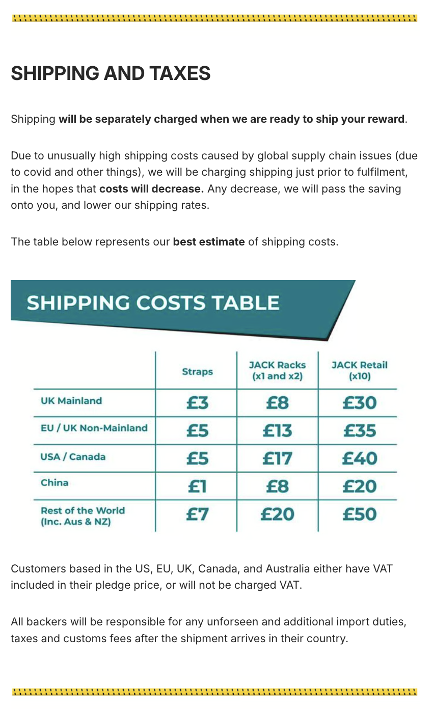 When you're running a campaign, transparency is key, especially when it comes to how and when your backers will be charged. One area that can sometimes catch backers by surprise is sales tax or VAT. To build trust and avoid confusion down the line, we recommend proactively communicating how taxes will be handled before your campaign ends.